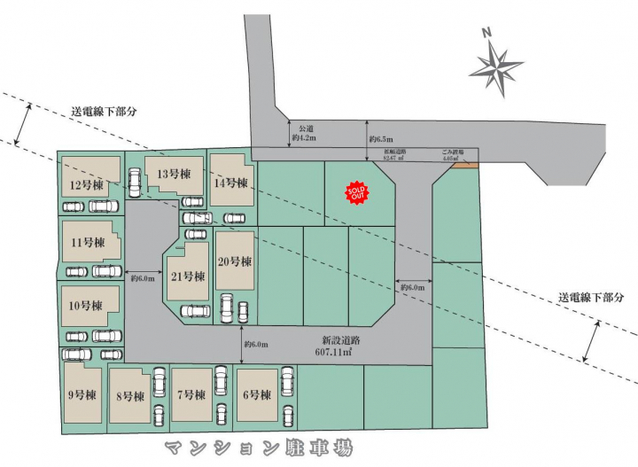 | 駐車場 | 2台 | 道路の幅員 | 北4.2m公道、分譲地内6.0m開発道路 |