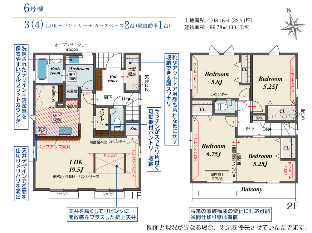 6号棟 間取り 3LDK 価格 3499万円 建物面積 99.78m2 土地面積 108.16m2 -