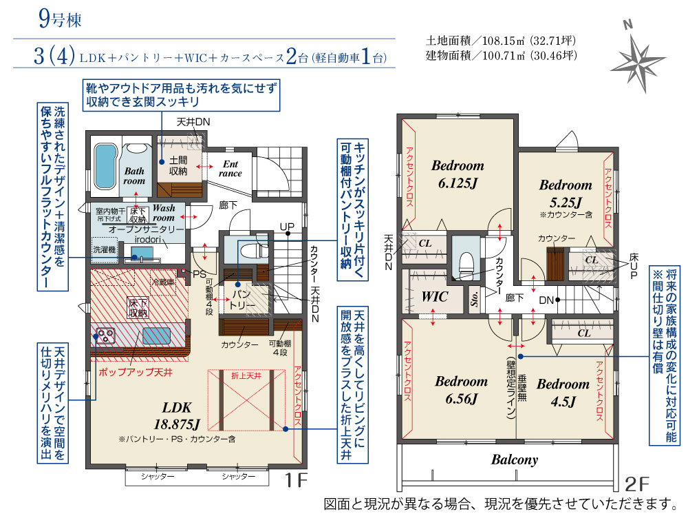9号棟 間取り 3LDK 価格 3499万円 建物面積 100.71m2 土地面積 108.15m2 -