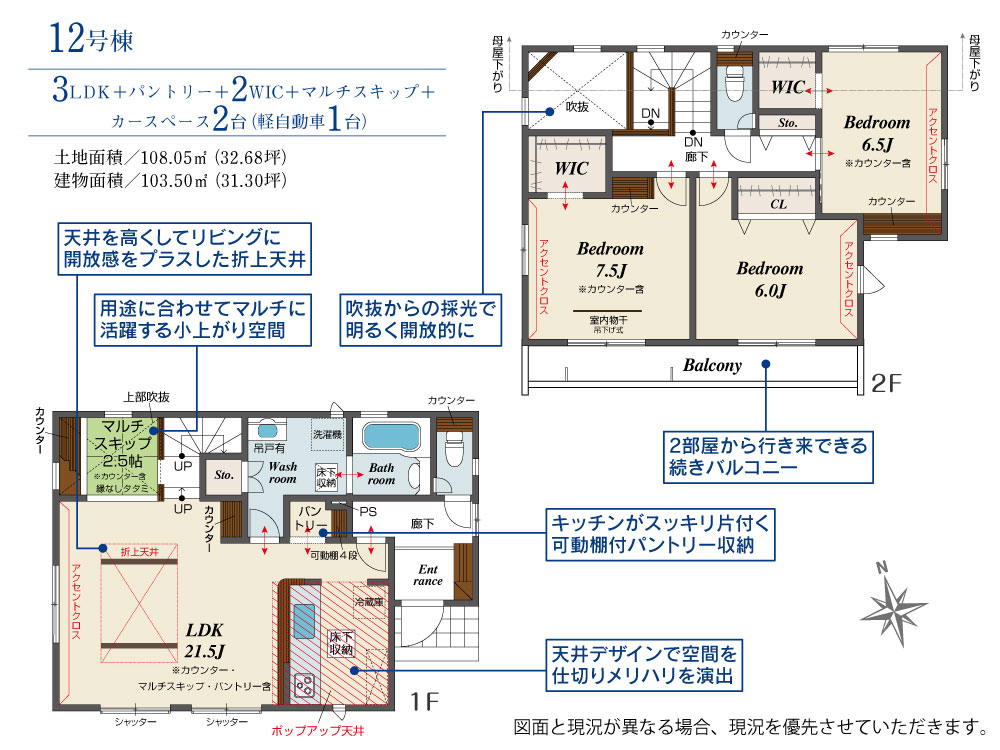 12号棟 間取り 3LDK 価格 3399万円 建物面積 103.50m2 土地面積 108.05m2 -
