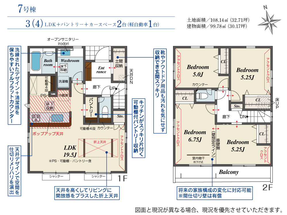 7号棟 間取り 3LDK 価格 3499万円 建物面積 99.78m2 土地面積 108.14m2 -