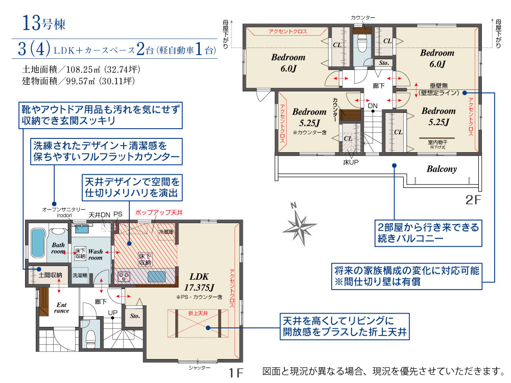 13号棟 間取り 3LDK 価格 3599万円 建物面積 99.57m2 土地面積 108.25m2 -