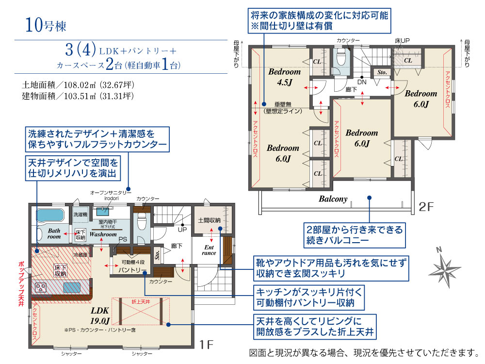 10号棟 間取り 3LDK 価格 3699万円 建物面積 103.51m2 土地面積 108.02m2 -