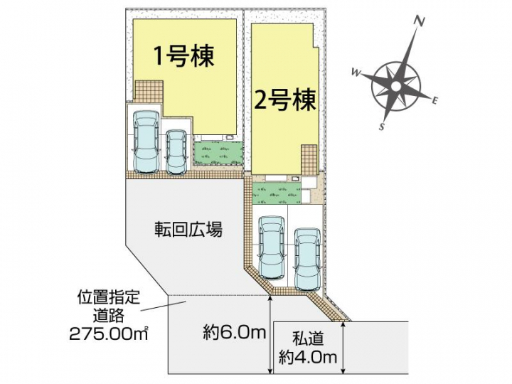 | 駐車場 | 2台 | 道路の幅員 | 南4.0m私道 |