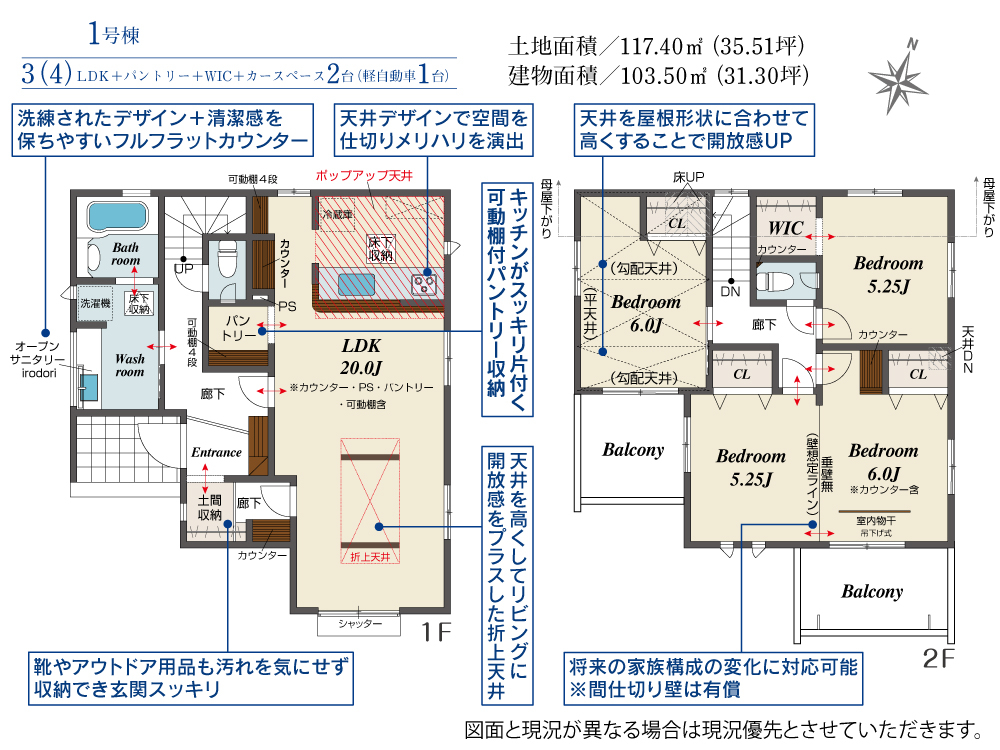 ★全棟オープンサニタリーirodori採用★インナーバルコニー採用★こだわりプランを採用した全2棟!