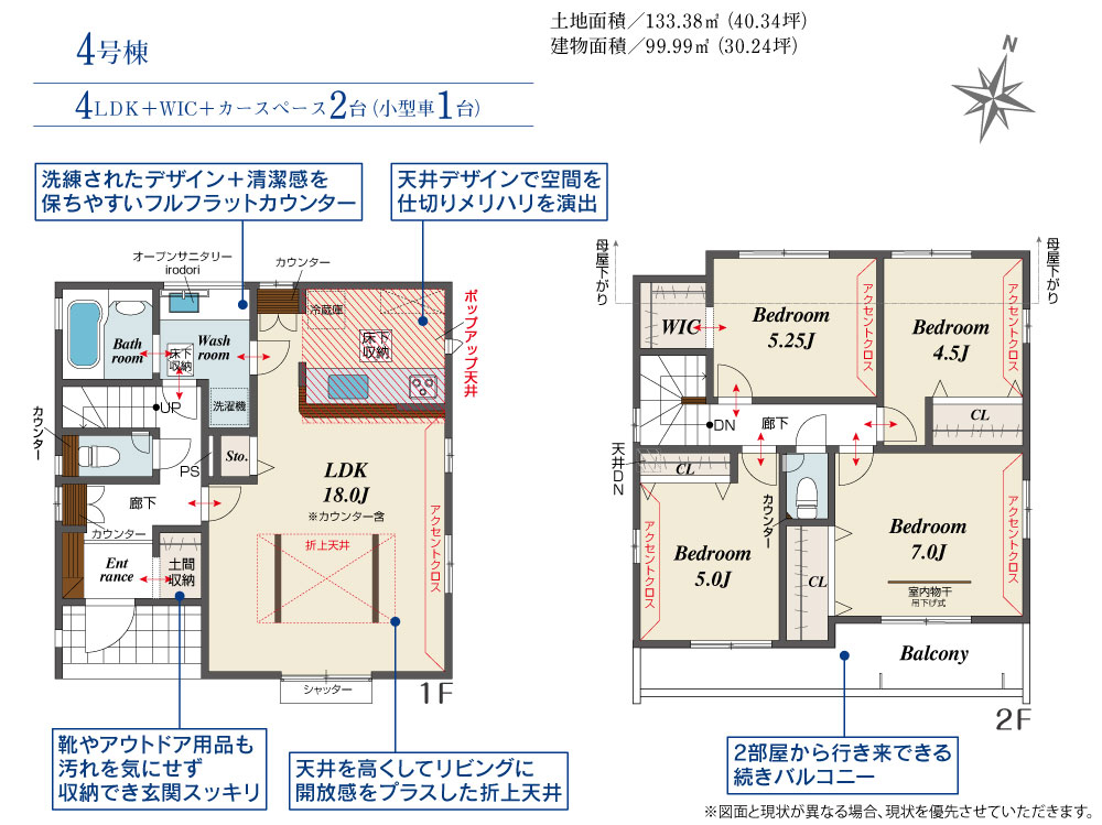 4号棟 間取り 4LDK 価格 3799万円 建物面積 99.99m2 土地面積 133.38m2 -