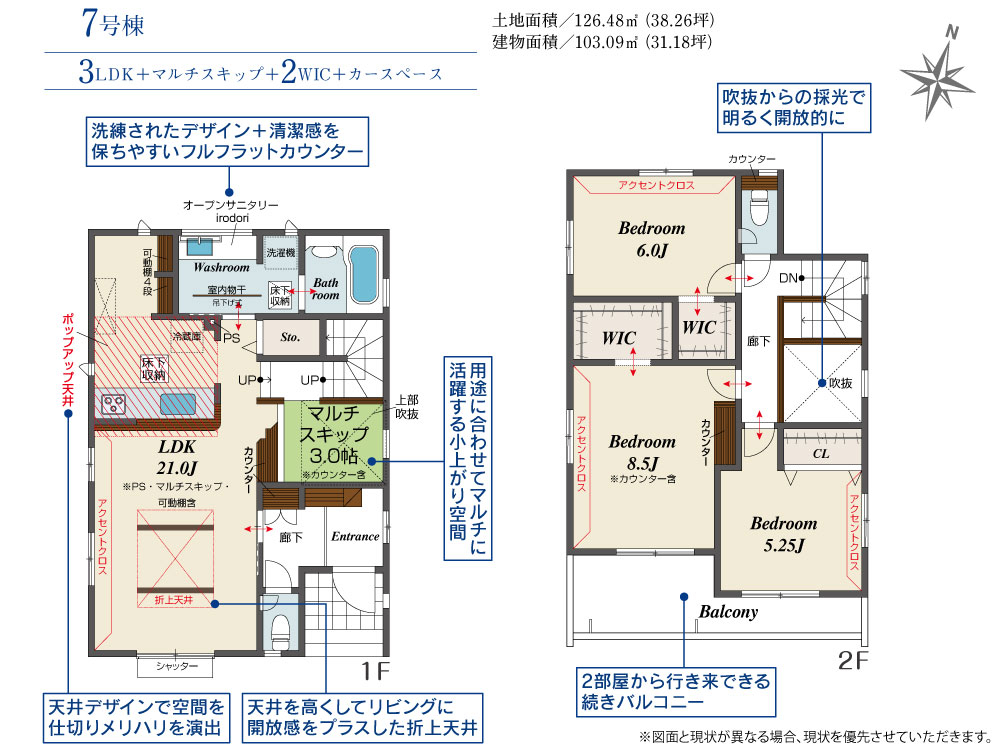 7号棟 間取り 3LDK 価格 4399万円 建物面積 103.09m2 土地面積 126.48m2 -