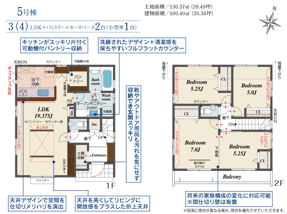 5号棟 間取り 3LDK 価格 3899万円 建物面積 100.40m2 土地面積 130.57m2 -
