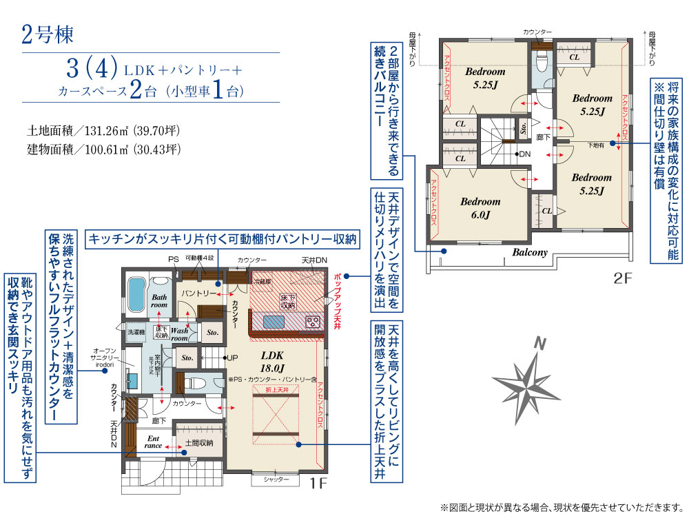 2号棟 間取り 3LDK 価格 3799万円 建物面積 100.61m2 土地面積 131.26m2 -
