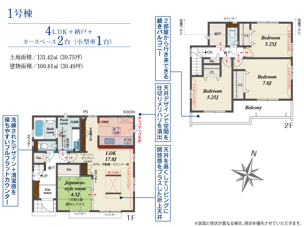 1号棟 間取り 4LDK+納戸 価格 3899万円 建物面積 100.81m2 土地面積 131.42m2 -