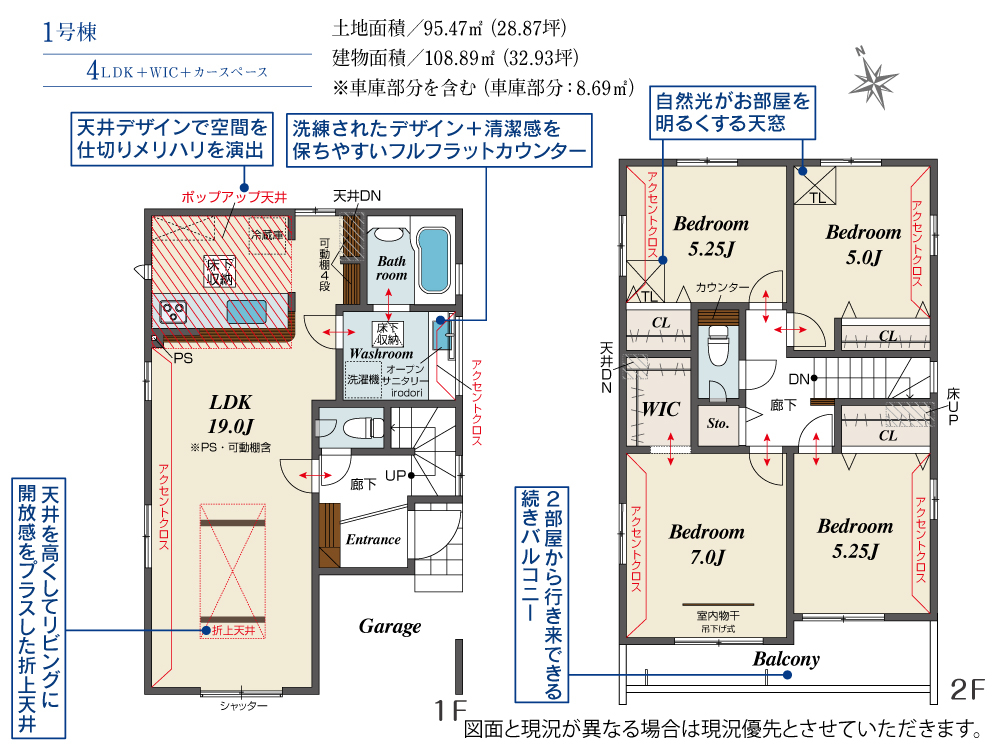 | 建物面積 | 108.89m2(約32.93坪) | 土地面積 | 95.06m2(約28.75坪)~95.47m2(約28.87坪) |