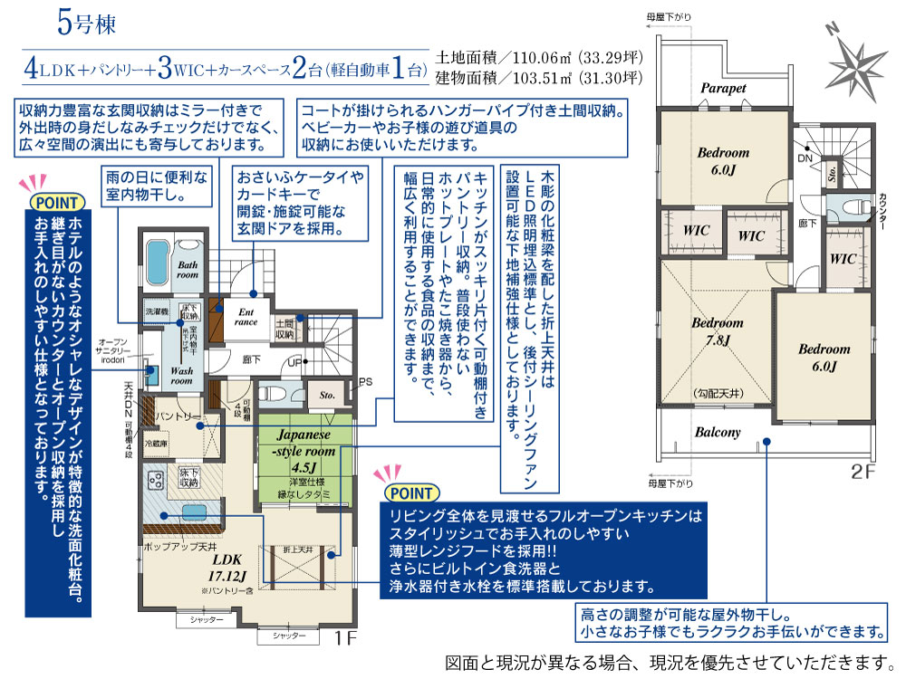 5号棟 間取り 4LDK 価格 5080万円 建物面積 103.51m2 土地面積 110.06m2 -