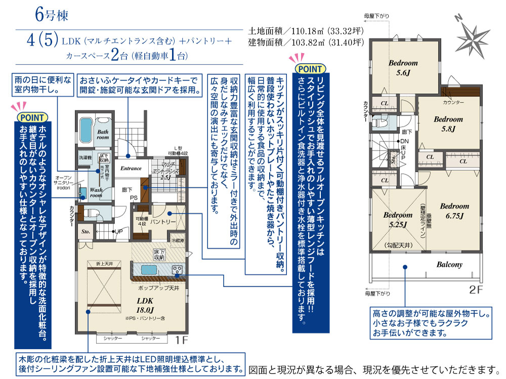 18号棟 間取り 3LDK 価格 5180万円 建物面積 104.12m2 土地面積 110.05m2