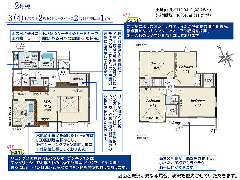 2号棟 間取り 3LDK 価格 4980万円 建物面積 103.40m2 土地面積 110.04m2 -