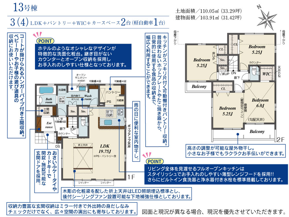 13号棟 間取り 3LDK 価格 5360万円 建物面積 103.91m2 土地面積 110.05m2 -
