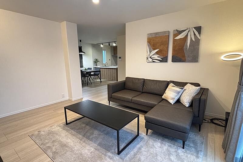 20.7帖のゆとりあるLDK。LDKには4.1帖のタタミスペースが隣接しており、より広さを引き立てます。