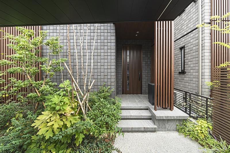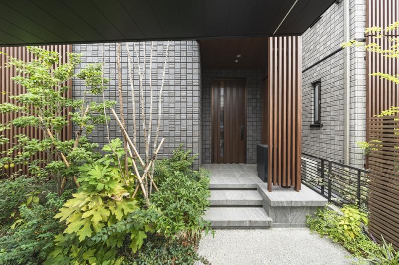 重厚感を演出する磁器タイル外壁を採用。