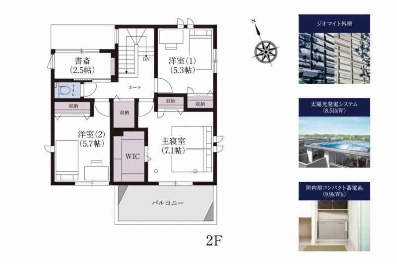 2階には子供部屋と主寝室以外に書斎や適材適所の収納配置をしており、生活の質が高まります