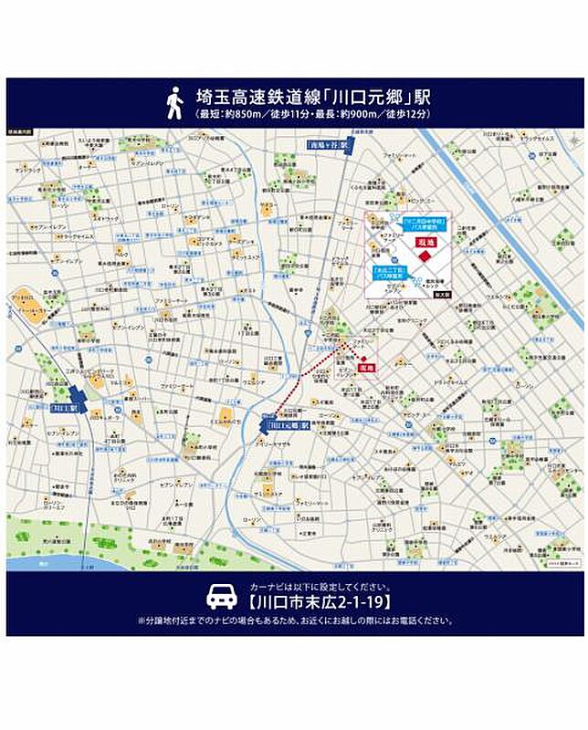 埼玉高速鉄道「川口元郷」駅 徒歩11分~12分 埼玉高速鉄道「南鳩ヶ谷」駅 徒歩20分~21分 JR京浜東北・根岸線「川口」駅 徒歩25分~26分 |