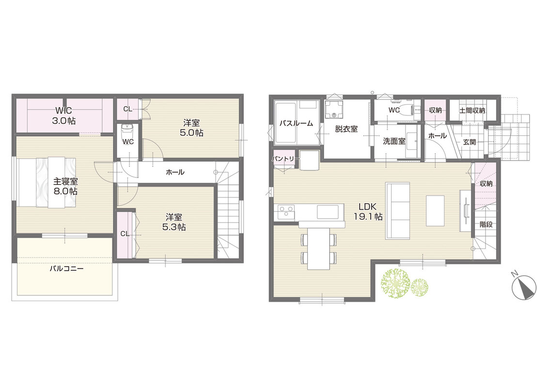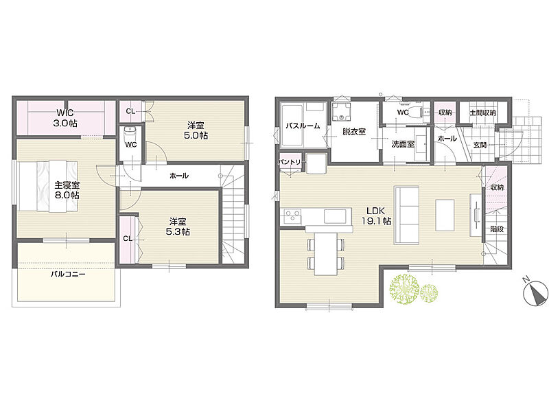 - ※完成予想図やCG合成画像は、門塀・植栽・庭・外観等、実際とは多少異なる場合があります。
