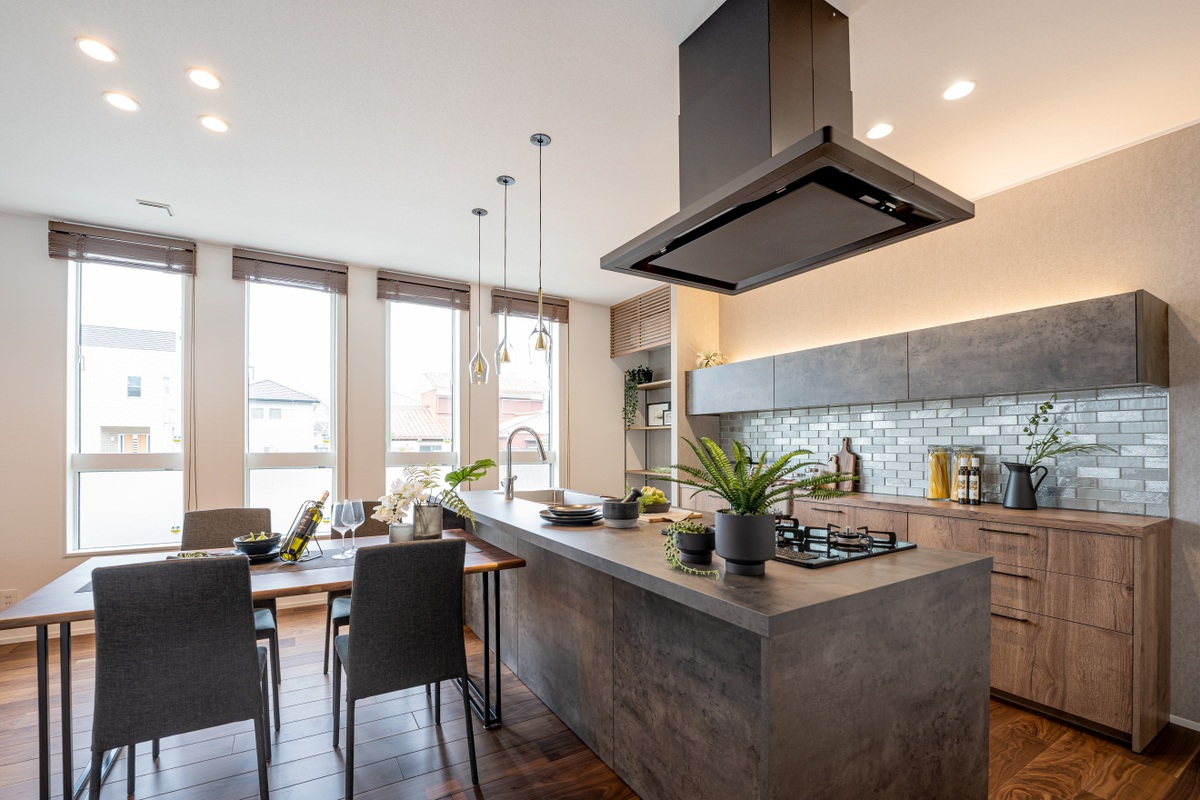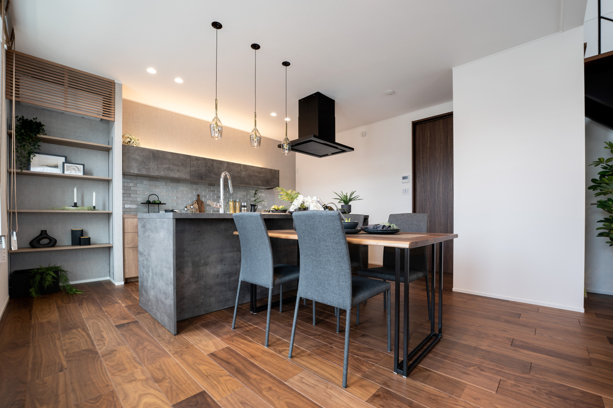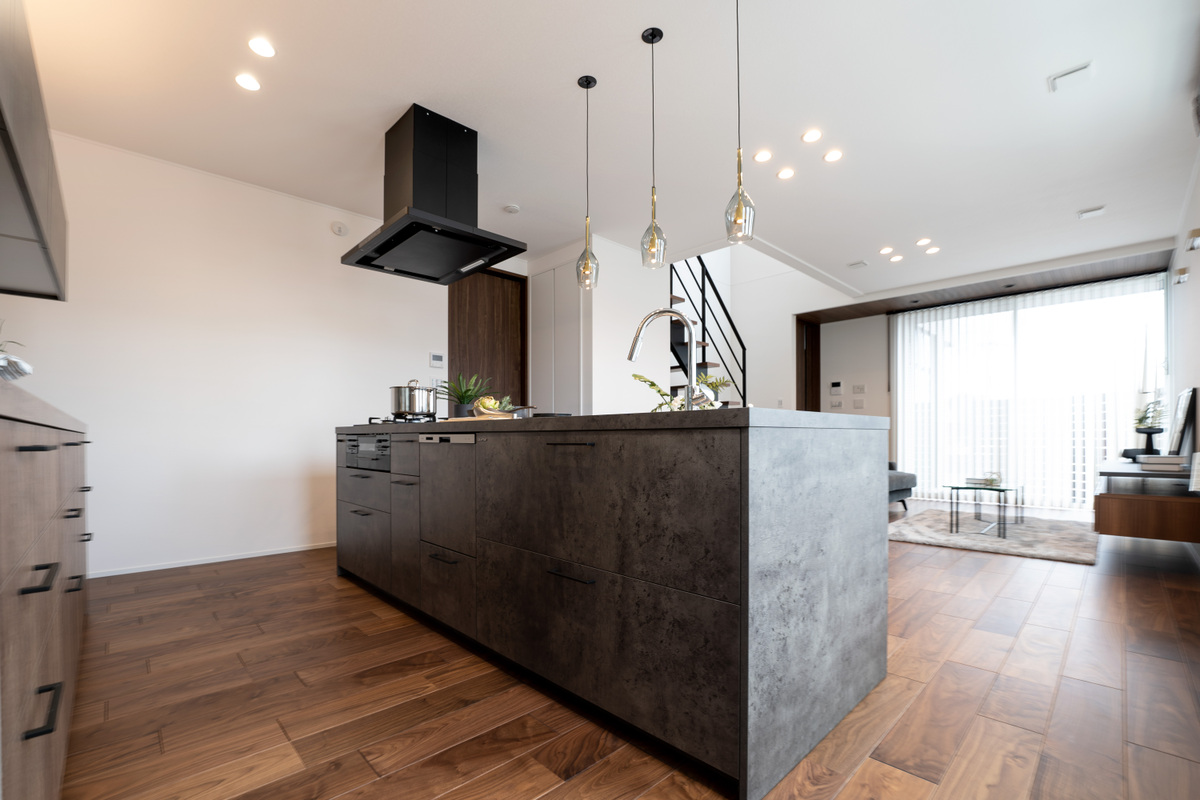 LDKでひときわ存在感を放つ、スタイリッシュなアイランドキッチ...