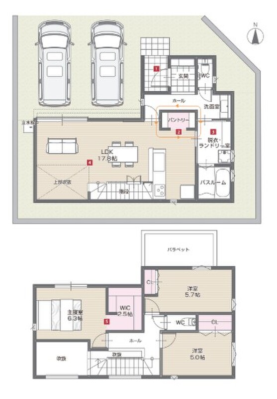 - ※完成予想図やCG合成画像は、門塀・植栽・庭・外観等、実際とは多少異なる場合があります。