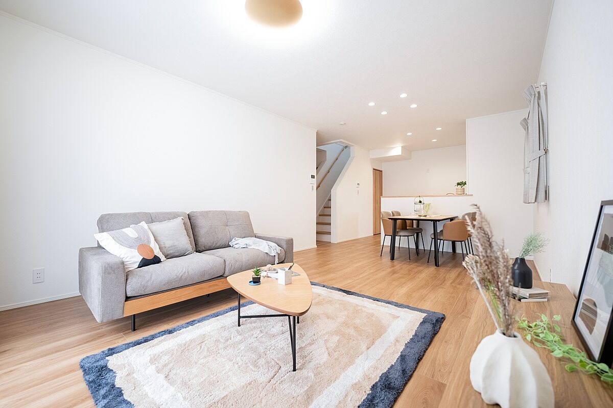 ・約19.5帖LDKは対面キッチンから視界が広がるI型×リビング階段仕様。