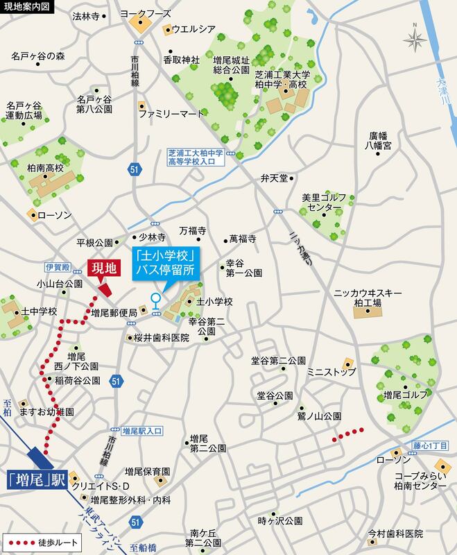 東武野田線「増尾」駅 徒歩10分 東武野田線「新柏」駅 徒歩19分 東武野田線「逆井」駅 徒歩25分 |