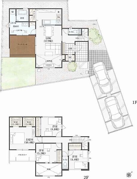 4号棟 間取り 4LDK+SIC+パントリー+リネン庫+2WIC+吹き抜け 価格 4480万円 建物面積 122.55m2 土地面積 179.90m2 -