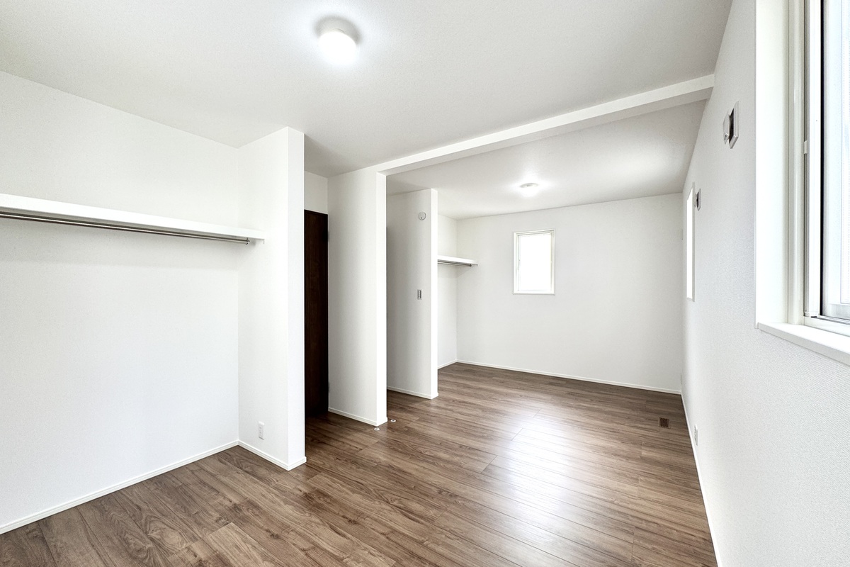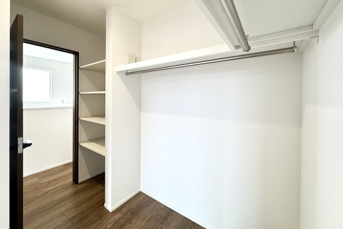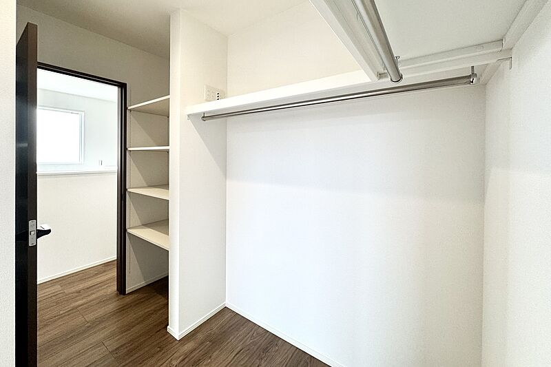(3)2階ホールと主寝室をぐるりと回遊できるファミリークローゼット。