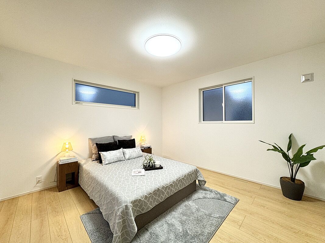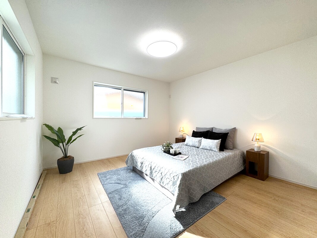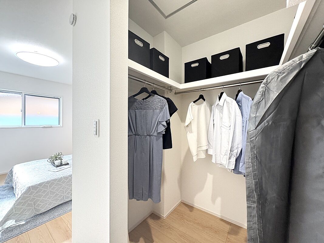 (3)主寝室には、たっぷり収納できるウォークインクローゼットを設置。衣類や小物をひとまとめに収納でき、毎日の身支度がスムーズに。