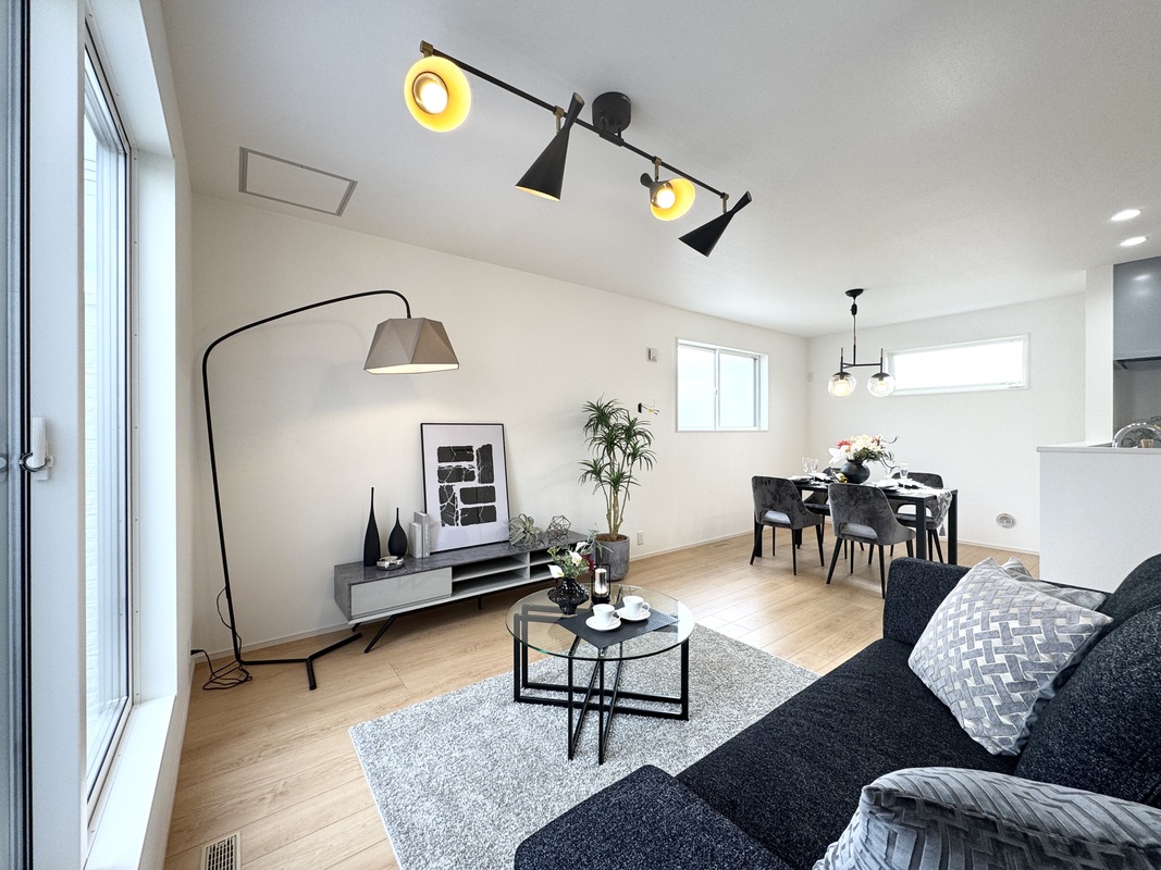 (2)上部トップライトから自然光が差し込み、明るく開放感のある空間を演出。室内がより快適で心地よい雰囲気に♪