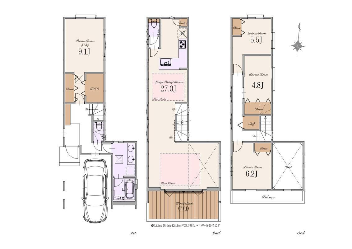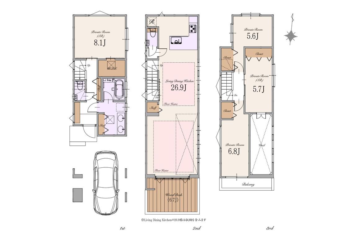 | 間取り | 2LDK+2S~3LDK+1S | 建物構造 | 木造スレート葺 3階建て(制震住宅+耐震住宅) |