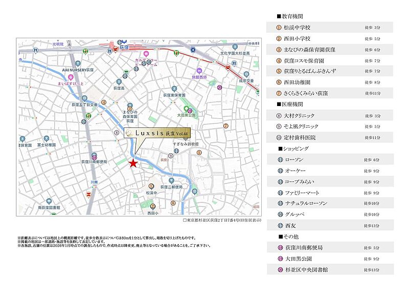 - JR中央線「荻窪」駅 徒歩11分東京メトロ丸ノ内線「南阿佐ケ谷」駅 徒歩23分JR中央線「阿佐ケ谷」駅 徒歩26分