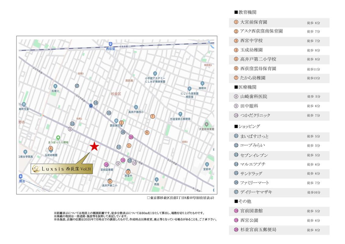 - JR中央線「西荻窪」駅 徒歩13分京王井の頭線「久我山」駅 徒歩14分京王井の頭線「三鷹台」駅 徒歩15分