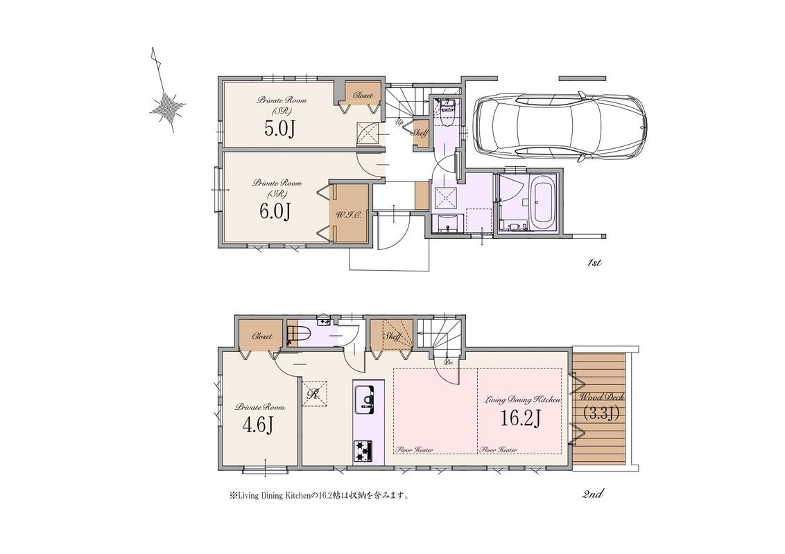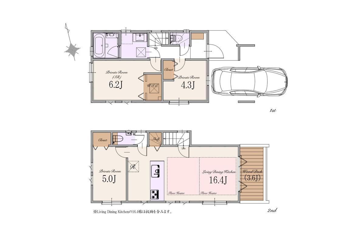- 86.14m2(車庫・駐輪場面積11.15m2含む)~86.60m2(車庫・駐輪場面積12.12m2・外部面積0.09m2含む)