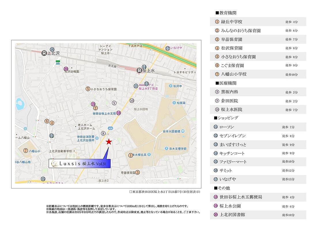 京王線「桜上水」駅 徒歩9分 京王線「上北沢」駅 徒歩13分 京王線「下高井戸」駅 徒歩18分 |