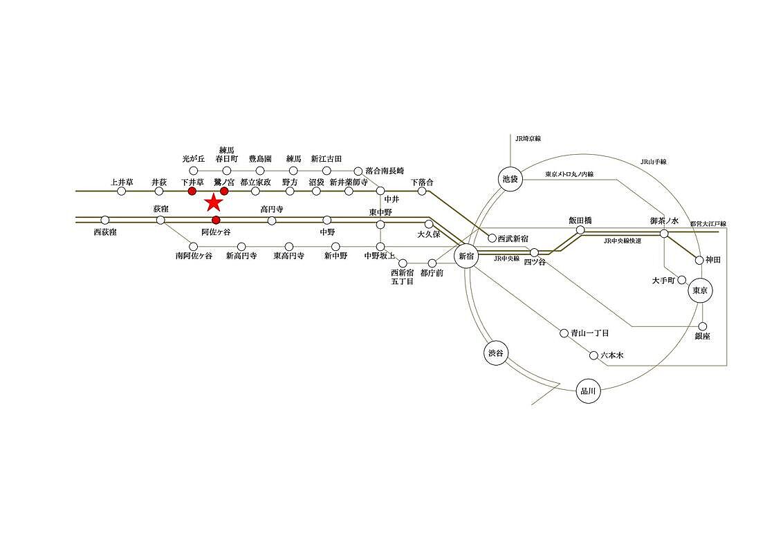 - 西武新宿線「鷺ノ宮」駅 徒歩6分西武新宿線「都立家政」駅 徒歩12分JR中央線「阿佐ケ谷」駅 徒歩21分