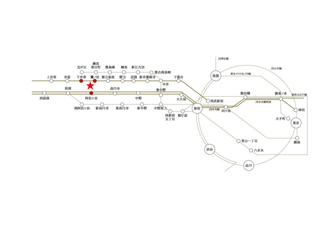 - 西武新宿線「鷺ノ宮」駅 徒歩6分西武新宿線「都立家政」駅 徒歩12分JR中央線「阿佐ケ谷」駅 徒歩21分