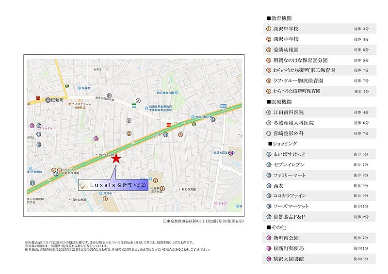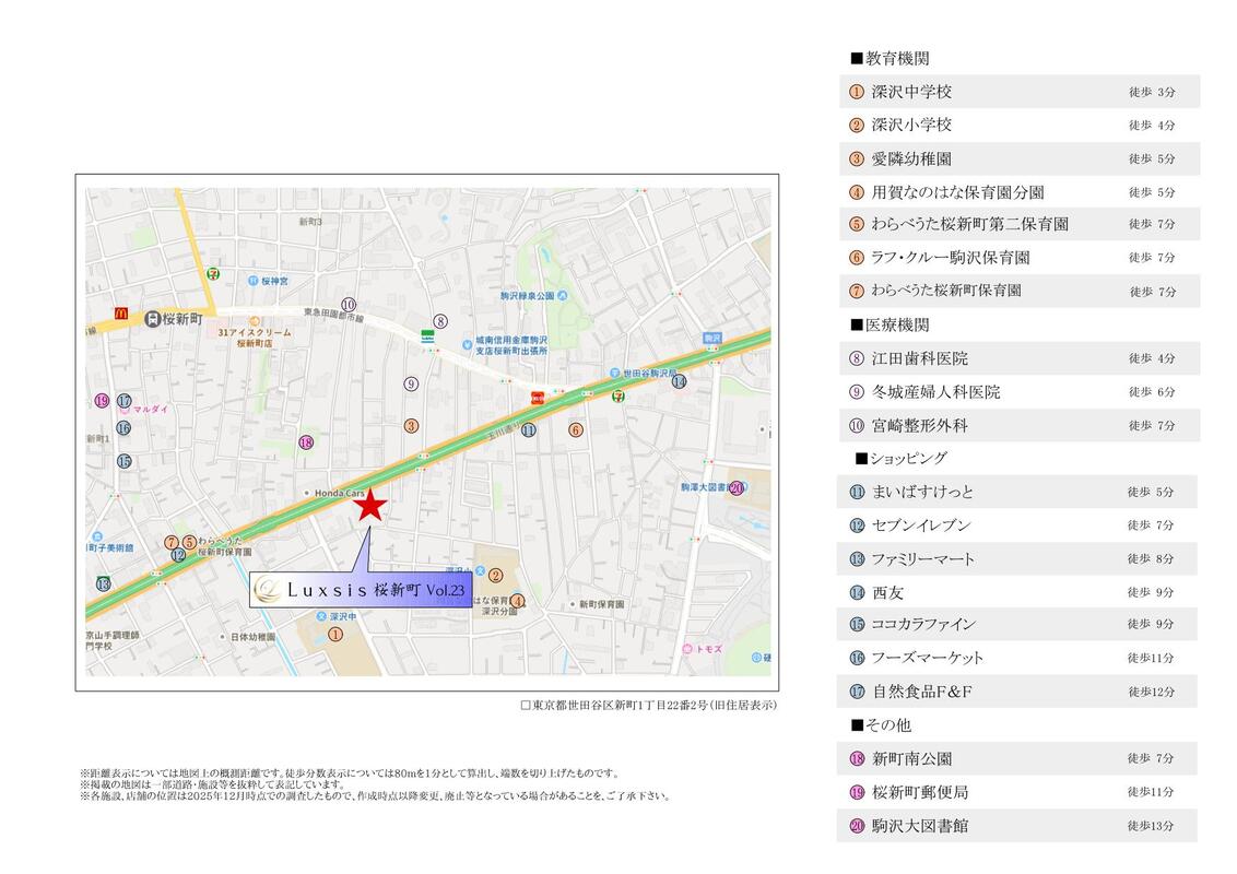 東急田園都市線「桜新町」駅 徒歩11分 東急田園都市線「駒沢大学」駅 徒歩16分 |