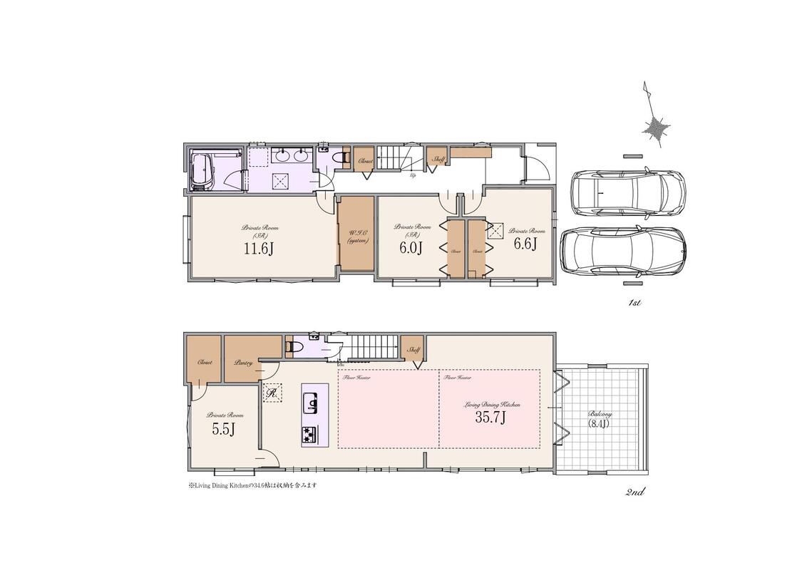 - 168.33m2(車庫面積14.09m2、外部参入面積10.17m2含む)~170.70m2(車庫面積13.68m2、外部参入面積10.99m2含む)
