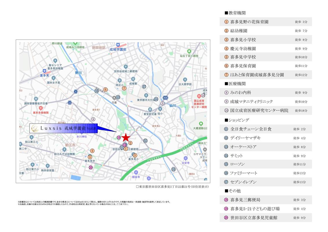 - 小田急小田原線「成城学園前」駅 徒歩17分小田急小田原線「喜多見」駅 徒歩24分