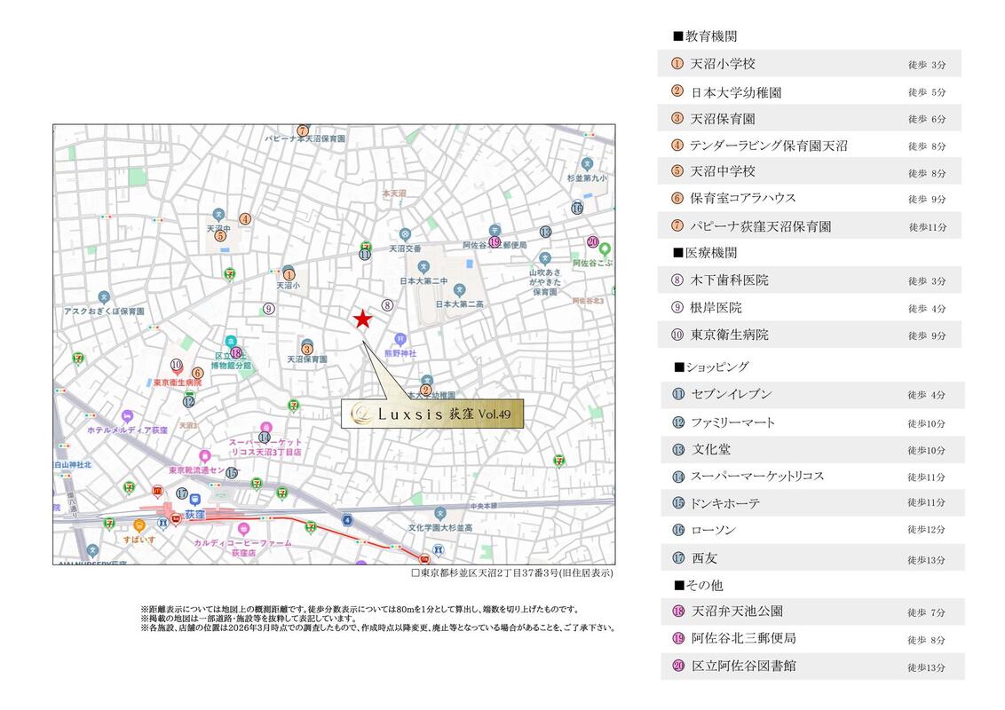 - JR中央線「荻窪」駅 徒歩12分JR中央線「阿佐ケ谷」駅 徒歩18分