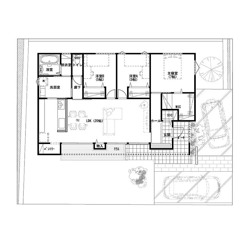 - ※完成予想図やCG合成画像は、門塀・植栽・庭・外観等、実際とは多少異なる場合があります。