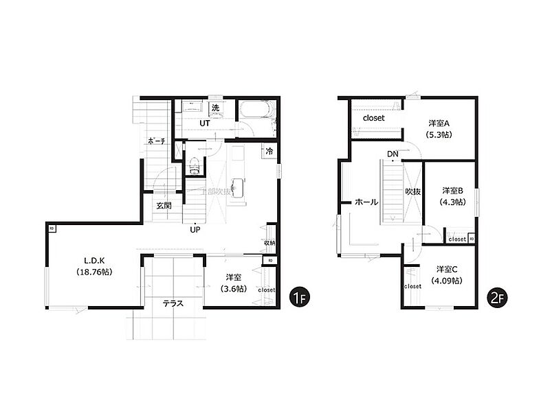 | 建物面積 | 101.23m2・106.41m2 | 土地面積 | 164.14m2・164.15m2 |