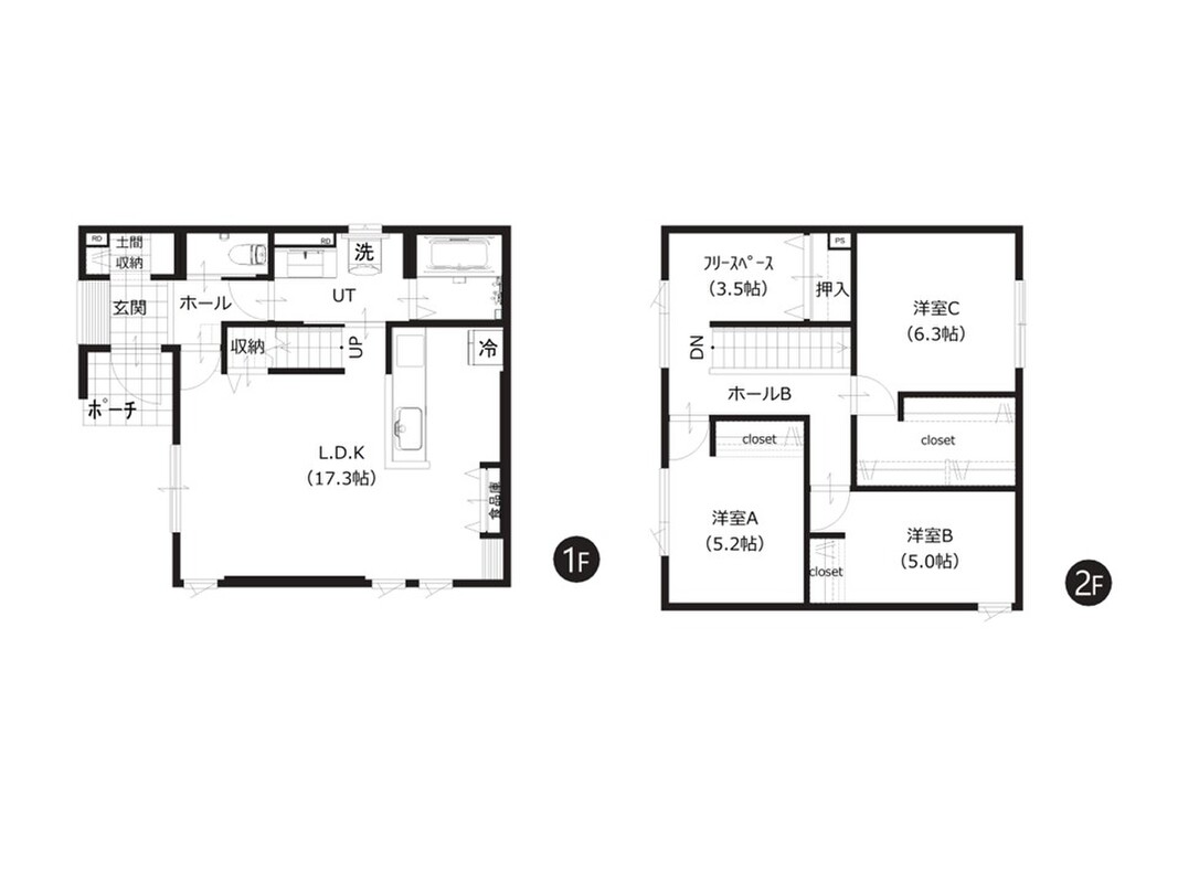 | 建物面積 | 91.3m2・97.31m2 | 土地面積 | 111.8m2・111.81m2 |