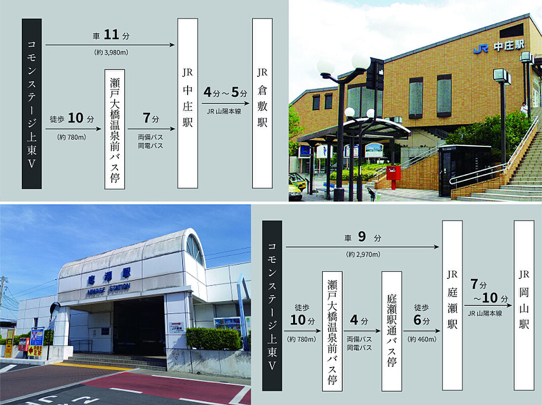 JR庭瀬駅:現地から約2970mJR中庄駅:現地から約3980...