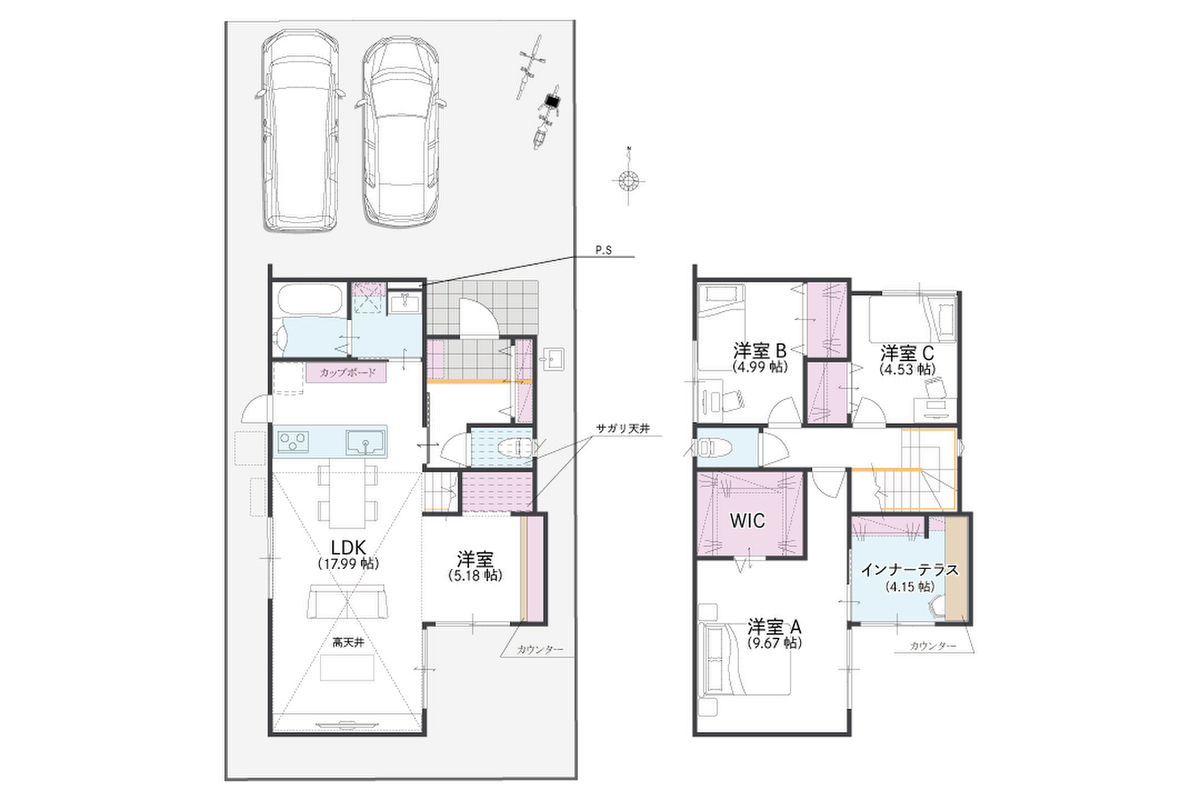 - ※完成予想図やCG合成画像は、門塀・植栽・庭・外観等、実際とは多少異なる場合があります。