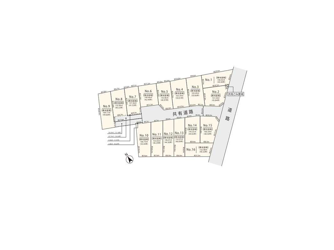 | 駐車場 | - | 道路の幅員 | 東南側幅員 約8.6m、共有道路幅員 約6m |