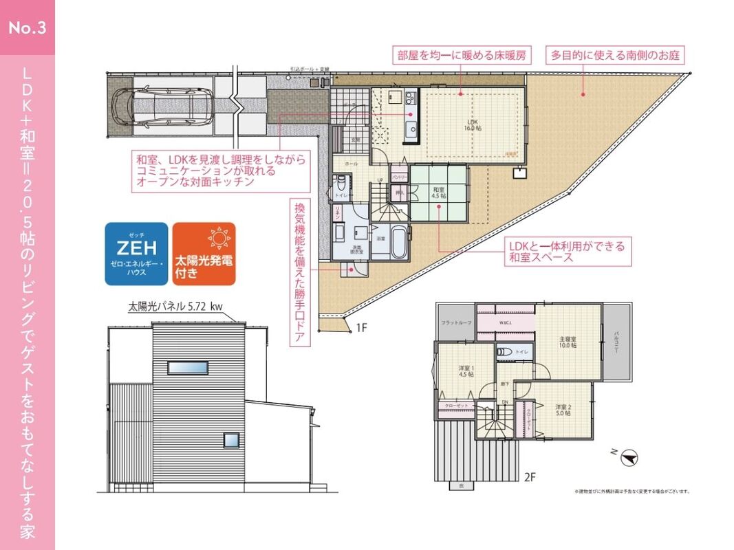 No.3 間取り 4LDK 価格 3790万円 建物面積 96.90m2 土地面積 166.94m2 -